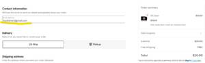 IMPORTANT NOTE: When checking out, the gift card will be sent to the email address listed under “contact information” UNLESS you scroll down further and enter your desired email after selecting “ADD A NOTE TO YOUR ORDER” .